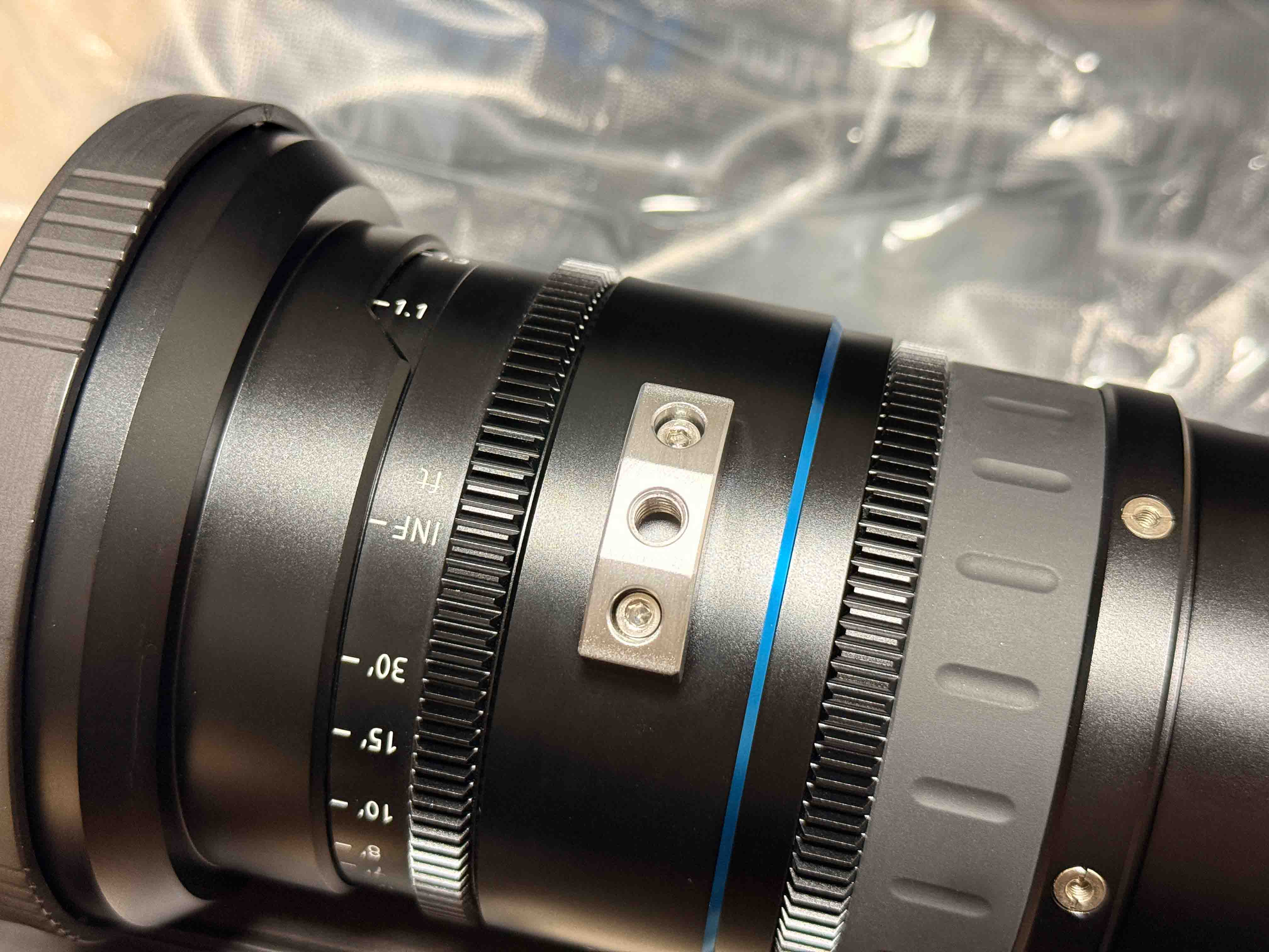 렌즈 구경이 ENG 줌 렌즈 마냥 매우 큽니다. 바디가 너무 작으니 반대로 너무 어색하고 카운터밸런스도 안 맞아서 별도로 긴 플레이트를 통해 중심으로 맞춰줘야 합니다. 특히나 렌즈 서포터를 달지 않으면 마운트가 굉장히 위험해 집니다.