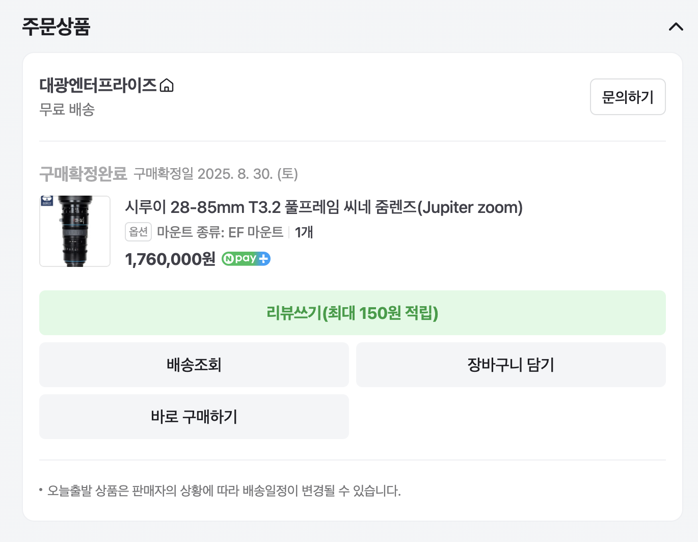 이번 포스팅에서는 시루이 사의 28-85 T3.2 시네마렌즈 리뷰 및 개봉기를 진행하려고 합니다. 해당 시네마렌즈를 구입하기 전 많은 고민을 했었습니다. 일반 단 렌즈 셋업으로 구성하는게 좋을지.. 아니면 시네마 줌렌즈나 super35mm 렌즈로 구성하는게 좋을지 고민하던 중 시루이 줌렌즈가 말도 안되는 가격에 파는 것을 보고 과감히 구매를 결정하였습니다. 참고로 해당 렌즈는 타사 28-85 t3.2 와 거의 동일한 렌즈라고 봐도 무방합니다.