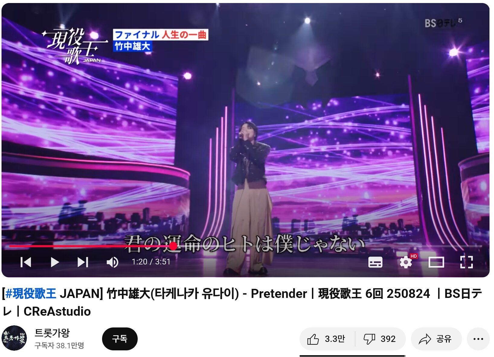 하단은 일본 BS방송국에서 녹화한 장면이다.